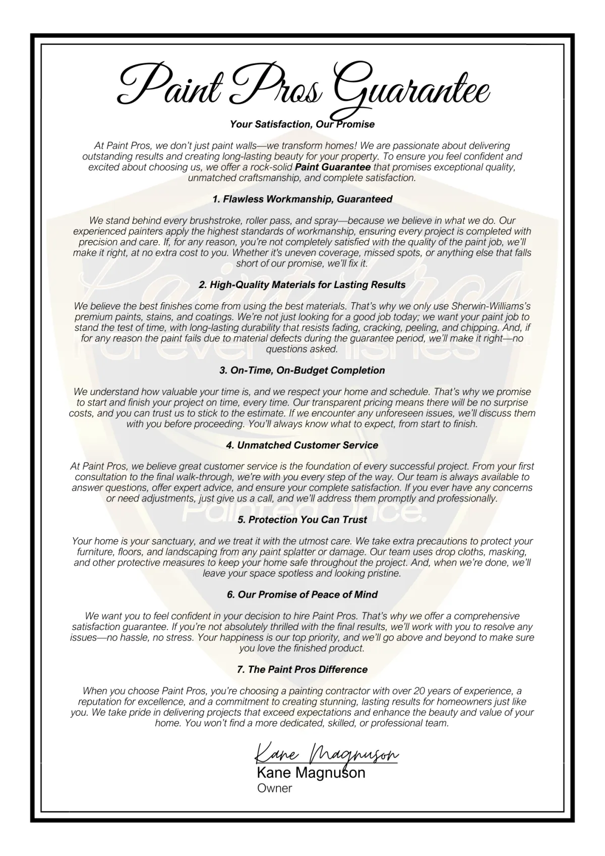 Paint Pro's Guarantee